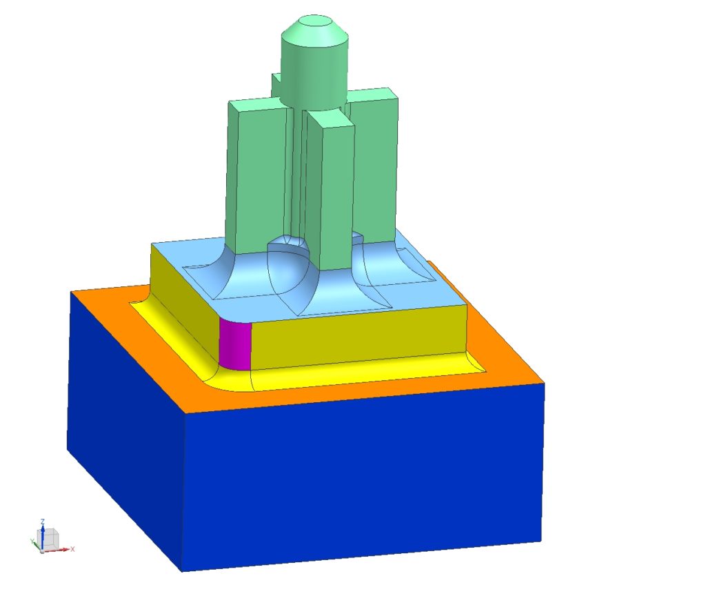 | 黄色 | ・XY基準面 XY通り心、XY振り分け基準 クリアランス無し。 ラジアスエンドミルで加工。底面残りR2。 注)エンドミル減り補正無し。振り分け心出し。 |